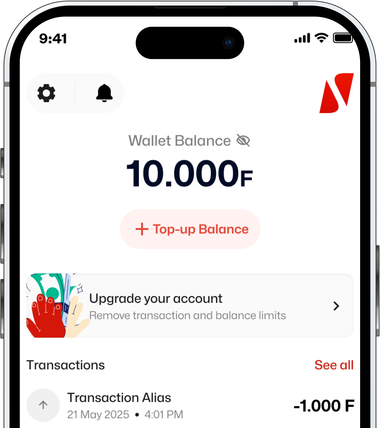 Rechargez votre portefeuille, payez des factures, achetez du crédit et suivez chaque transaction en temps réel.